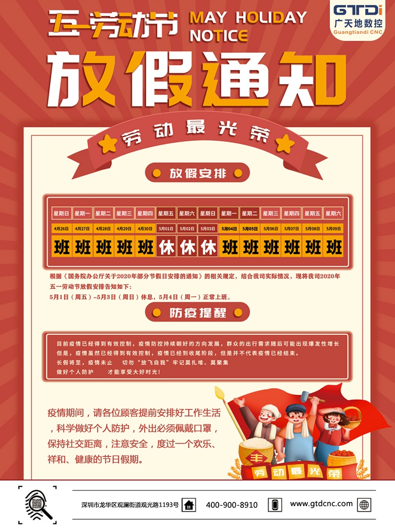 2020年完美电竞数控公司五一劳动节放假时间安排