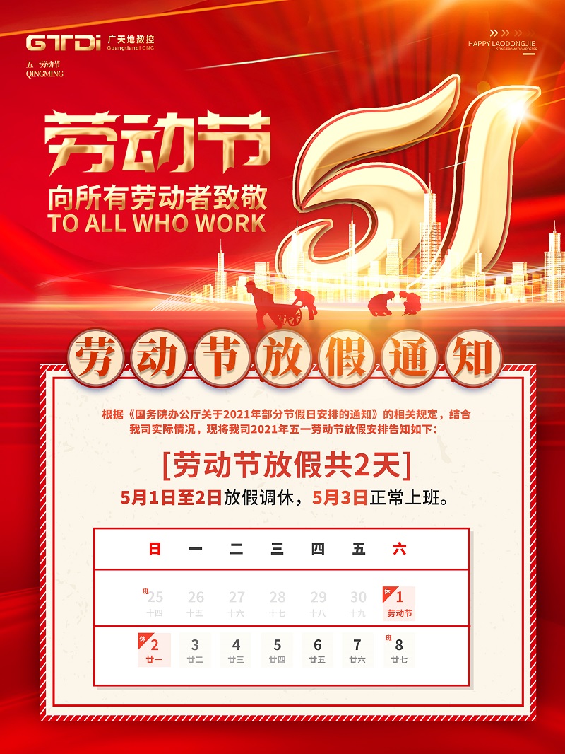 完美电竞数控2021年五一劳动节放假通知
