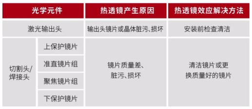 2、切割头/焊接头加工设备不同光学元件镜片产生热透镜效应的解决方法: